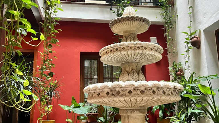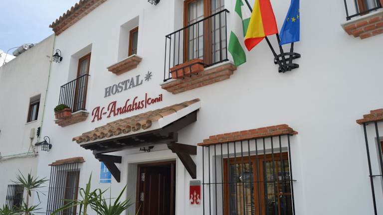 Das Hostal Al-Andalus ist eine charmante Pension mit einer Dachterrasse, die einen Panoramablick auf das Meer bietet. Die Unterkunft bietet eine freundliche Atmosphäre und eine ansprechende Innenarchitektur, die um einen typisch andalusischen Innenhof mit Pflanzen und einem Brunnen organisiert ist. Die Mitarbeiter stehen an der Rezeption zur Verfügung, um Gäste über die Umgebung zu informieren.