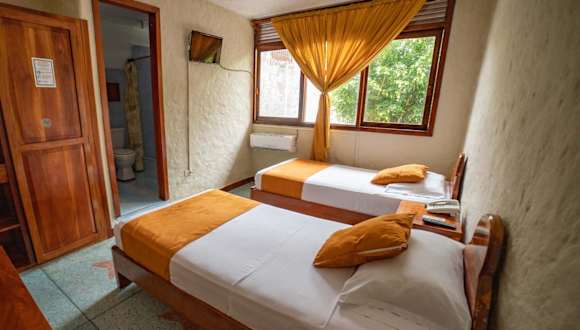 Das Hostal Estrella de Mar befindet sich in Puerto Ayora, nur 24 Fahrminuten vom Nationalpark Galapagos entfernt. Die Lage bietet eine hervorragende Möglichkeit, Wildtiere zu beobachten und die umliegende Natur zu erkunden. Der Flughafen Baltra ist in einer Autostunde erreichbar.