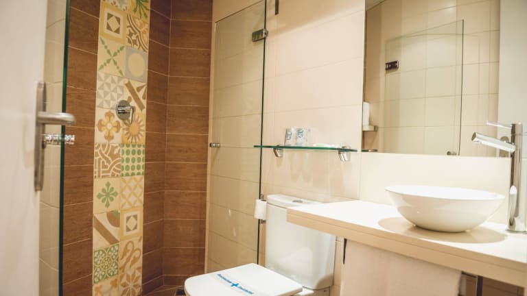 Die Zimmer sind praktisch und komfortabel eingerichtet und verfügen über ein Doppelbett. Jedes Zimmer hat ein eigenes Bad, das mit einer Dusche oder Badewanne und einem Haartrockner ausgestattet ist. Eine Klimaanlage sowie Heizung sorgen für ein angenehmes Raumklima. Zu den weiteren Annehmlichkeiten gehören Safe, Telefon, Sat-TV, Radio und kostenfreies WiFi. Zudem gibt es Balkone oder Terrassen mit Stadtblick.