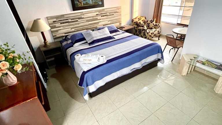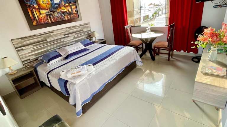 Die Zimmer im Hostal Ocean Pacifico sind mit einem Schreibtisch, einem Flachbild-TV, einem eigenen Badezimmer sowie Bettwäsche und Handtüchern ausgestattet. Jede Wohneinheit hat zudem einen Kleiderschrank und eine Veranda oder einen Patio mit Stadtblick.
