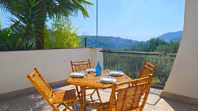 Hostdomus - La casa tra ulivi e storia bietet eine Ferienwohnung mit Gartenblick und einer Terrasse, die einen schönen Meerblick gewährt. Die Unterkunft ist eine Nichtraucherunterkunft und liegt in einer ruhigen Umgebung.