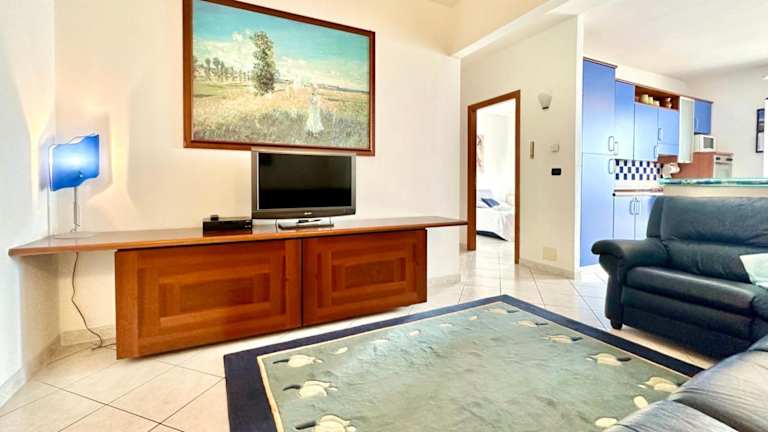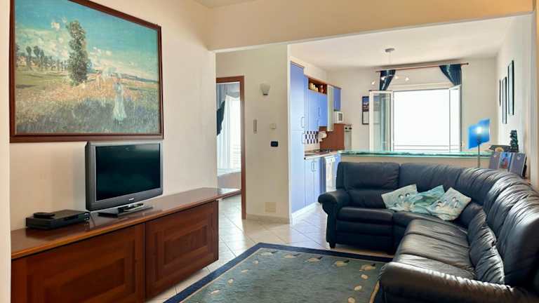 Die Ferienwohnung ist ausgestattet mit 2 Schlafzimmern, 1 Badezimmer, Bettwäsche und Handtüchern. Des Weiteren verfügt sie über einen Flachbild-TV, eine voll ausgestattete Küche sowie einen Balkon mit Blick auf das Meer.