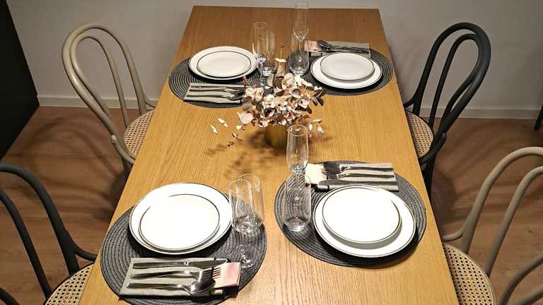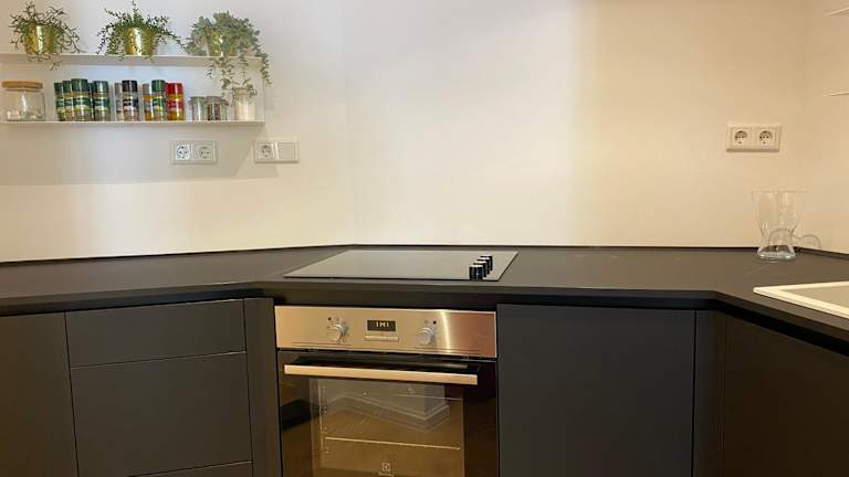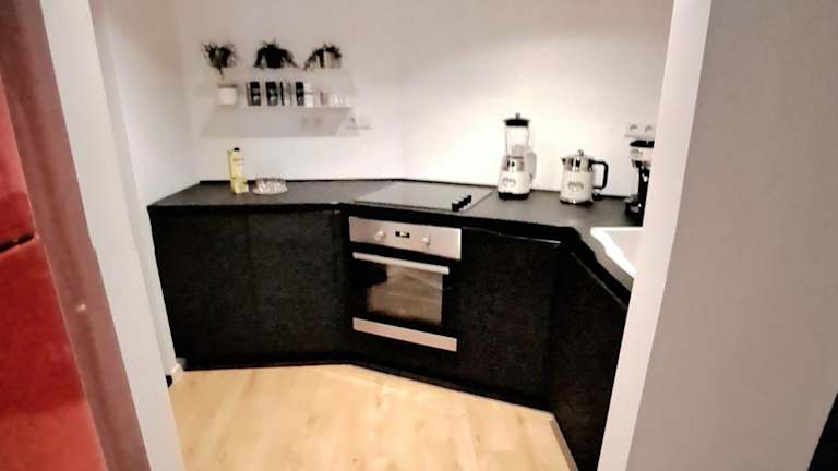 Die Ferienwohnung verfügt über ein Schlafzimmer, ein Wohnzimmer und eine voll ausgestattete Küche mit Kühlschrank und Kaffeemaschine. Das Badezimmer ist mit einer Dusche und einem Haartrockner ausgestattet. Handtücher und Bettwäsche werden bereitgestellt.