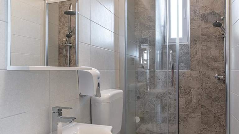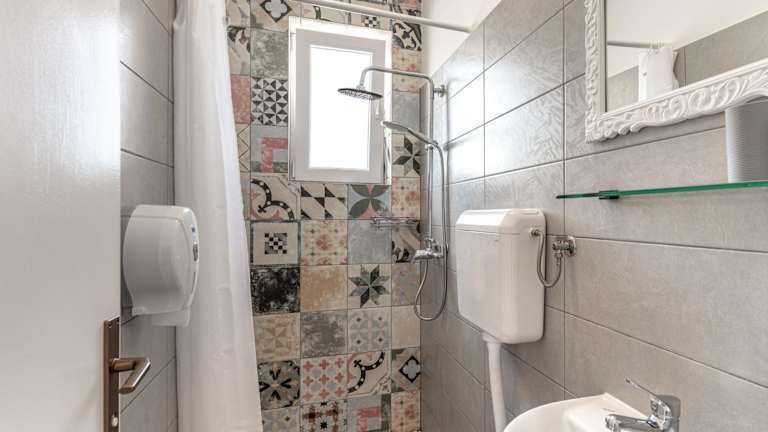 Die Gästezimmer sind hell eingerichtet und verfügen über einen Balkon mit Bergblick in mehreren Wohneinheiten. Jedes Zimmer ist mit Klimaanlage, Kühlschrank, Ofen, Kaffeemaschine, Dusche, Haartrockner und Schreibtisch ausgestattet. Zudem sind Bettwäsche und Handtücher vorhanden, und es gibt ein Gemeinschaftsbad sowie einen Kleiderschrank in den Zimmern. Einige Zimmer bieten eine Terrasse mit Meerblick.