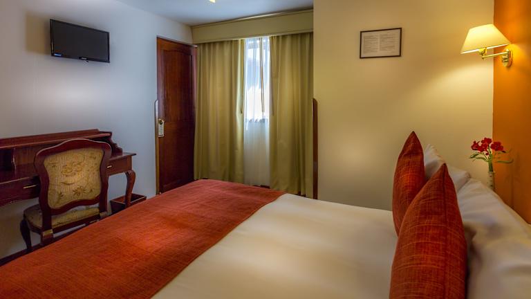 Die Zimmer sind mit Böden und Mobiliar aus peruanischem Hartholz ausgestattet und bieten eine sanfte Beleuchtung. Sie verfügen über Heizung, ein Doppelbett, ein Queensize-Bett oder ein Kingsize-Bett sowie einen Balkon oder eine Terrasse mit Innenhofblick. Zusätzlich sind ein Telefon, ein Kabel-TV, ein Safe und kostenfreies WiFi vorhanden. Die Badezimmer sind mit einer Dusche und einer Badewanne ausgestattet und bieten Kosmetikartikel und Handtücher.