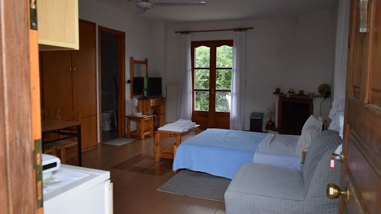 Jedes Zimmer im Hostel Gerakina ist mit einem Kleiderschrank, einer Terrasse mit Gartenblick, einem eigenen Badezimmer, einem Flachbild-TV, Bettwäsche und Handtüchern ausgestattet. Es stehen mehrere Zimmer mit Bergblick zur Verfügung, und alle Zimmer verfügen über einen Balkon. Außerdem bieten die Gästezimmer einen Kühlschrank.