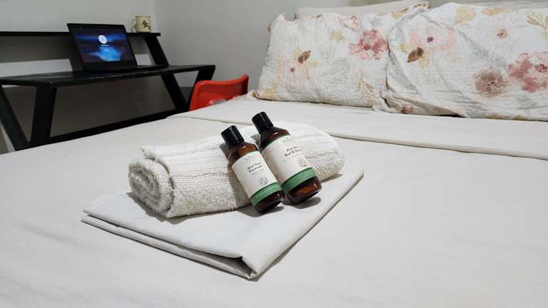 Essenslieferung in die Unterkunft ist möglich. Es steht eine Gemeinschaftsküche zur Verfügung, um kleine Snacks oder Mahlzeiten selbst zuzubereiten. Die Unterkunft bietet Zimmerservice und weitere Verpflegungsmöglichkeiten sind nicht erwähnt.