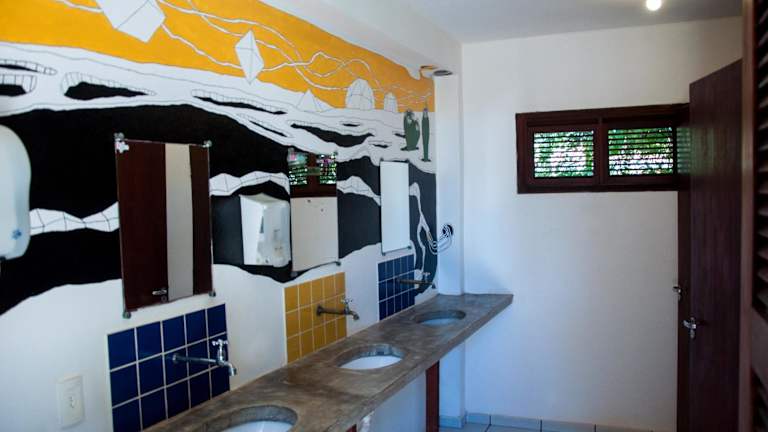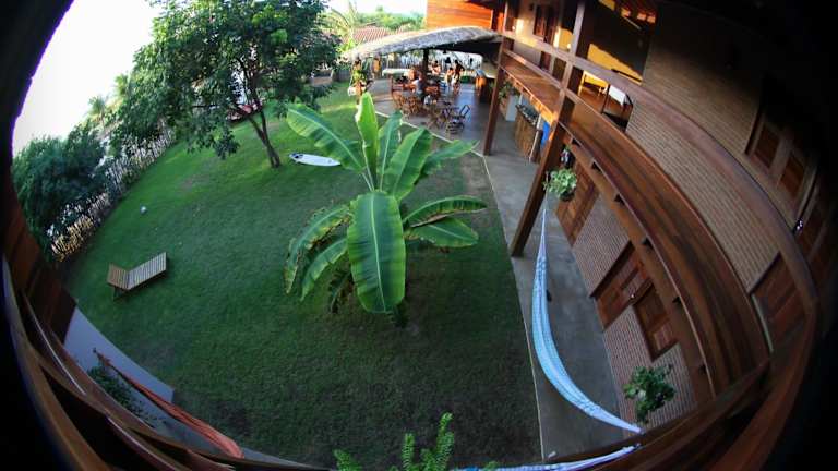 Die Zimmer und Schlafsäle in der Jangada Lodge sind einfach, aber gemütlich eingerichtet und bieten entweder einen Blick auf den Garten oder das Meer. Einige Zimmer verfügen auch über einen Balkon. Jede Unterkunft verfügt über ein eigenes Bad oder ein Gemeinschaftsbad.