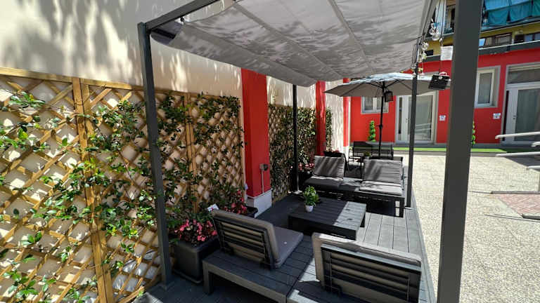 Die Zimmer sind ausgestattet mit einer Terrasse, die einen Blick auf den Garten bietet. Jedes Wohneinheit verfügt über einen Flachbild-TV mit Satellitenkanälen, einen Kühlschrank, eine Kaffeemaschine, ein Bidet, einen Haartrockner und einen Schreibtisch. Bettwäsche und Handtücher werden bereitgestellt. Die Unterkünfte sind Nichtraucherzimmer und auch Familienzimmer stehen zur Verfügung.