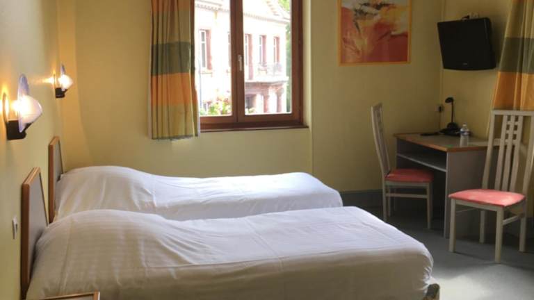 Jedes Zimmer in der Hostellerie d'Alsace ist mit einem Schreibtisch, einem Flachbild-TV sowie einem eigenen Badezimmer ausgestattet. Auch Bettwäsche und Handtücher werden bereitgestellt. Alle Gästezimmer verfügen über einen Kleiderschrank.