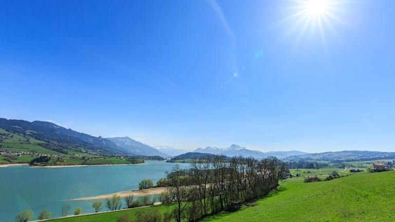 Die Hostellerie Du Vignier hat eine ruhige Lage oberhalb des Greyerzersees und bietet eine wunderschöne Aussicht auf die Freiburger Voralpen.