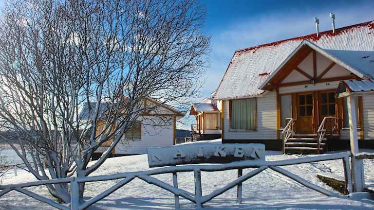 Das Hosteria Kaiken befindet sich in malerischer Umgebung, nahe dem See Fagnano, welcher nur 150 m entfernt ist. Die nächste Ortschaft, Tolhuin, liegt 5 km entfernt, während Ushuaia 95 km entfernt ist. Die Lage bietet eine herrliche Aussicht auf den See und den Sonnenuntergang.