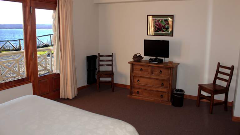 Die Zimmer im Hosteria Kaiken sind hell und verfügen über grosse Fenster mit Blick auf den See. Sie sind mit einem eigenen Bad ausgestattet. Für die Buchung ist zu beachten, dass die Zimmer standardmässig mit Einzelbetten eingerichtet sind.