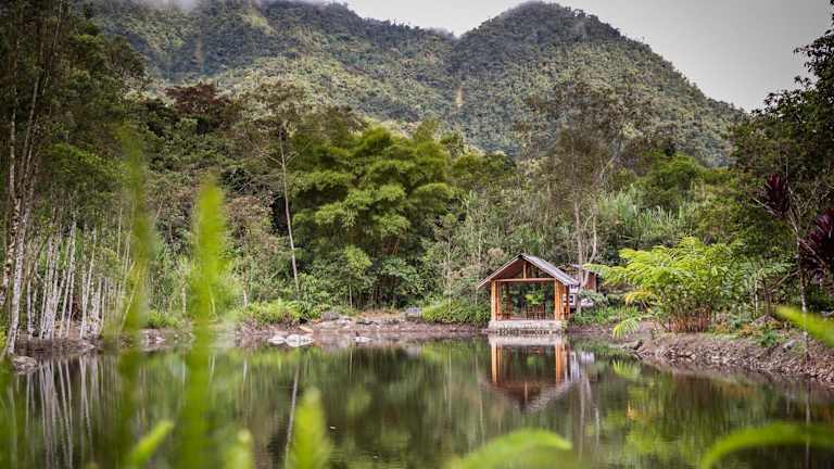 Die Hostería Kumbha Mela Mindo befindet sich in Mindo, umgeben von einer malerischen Berglandschaft. Die ruhige Lage ermöglicht es den Gästen, die Natur zu geniessen und die Umgebung zu erkunden.