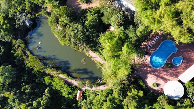 Die Unterkunft Hostería Kumbha Mela Mindo bietet einen herrlichen Ausblick auf die Berge sowie verschiedene Annehmlichkeiten wie ein Restaurant, Zimmerservice, eine Bar, einen gepflegten Garten und einen einladenden Aussenpool. Einige Wohneinheiten verfügen über einen Balkon oder eine Veranda mit Blick auf den Pool.
