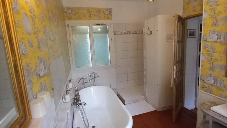 Die Unterkunft bietet ein Schlafzimmer sowie ein Badezimmer mit Dusche, Badewanne und kostenlosen Pflegeprodukten. Handtücher und Bettwäsche werden bereitgestellt.