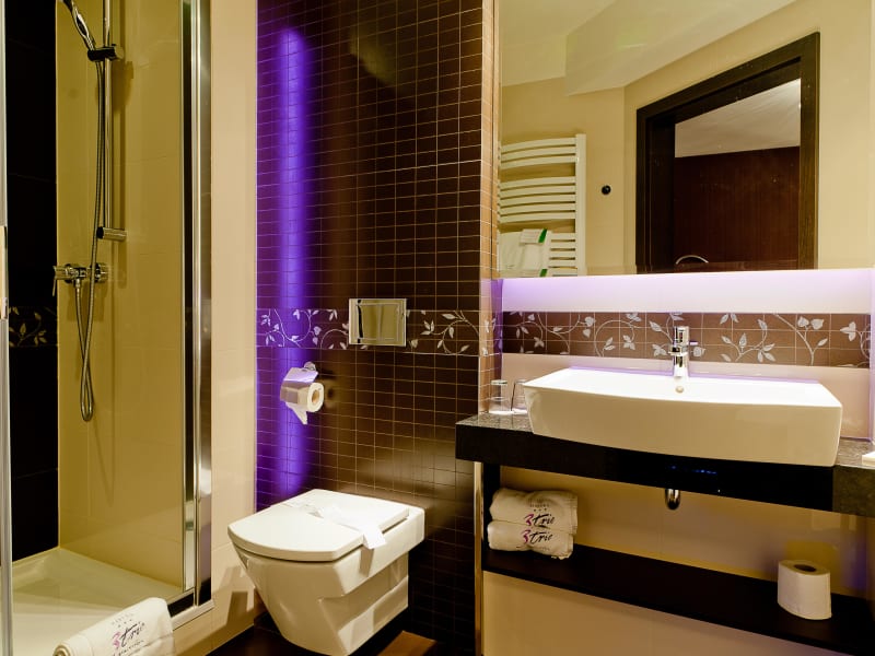 Die stilvollen, klimatisierten Zimmer im Hotel 3 Trio sind mit einem LCD-Sat-TV, LED-Beleuchtung und einem Sitzbereich mit Designersessel ausgestattet. Jedes Zimmer hat ein geräumiges Bad mit Dusche und Haartrockner. Zu den Annehmlichkeiten gehören zudem eine Minibar, ein Safe sowie kostenfreies Wifi.