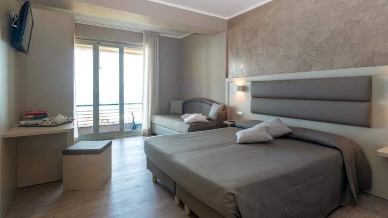 Die pastellfarbenen Zimmer im Hotel 4 Venti verfügen über ein eigenes Bad, Klimaanlage und einen Flachbild-Sat-TV. Im Bad liegen kostenfreie Pflegeprodukte und ein Haartrockner bereit. Einige Zimmer bieten eine Terrasse und Meerblick.