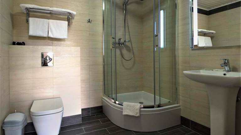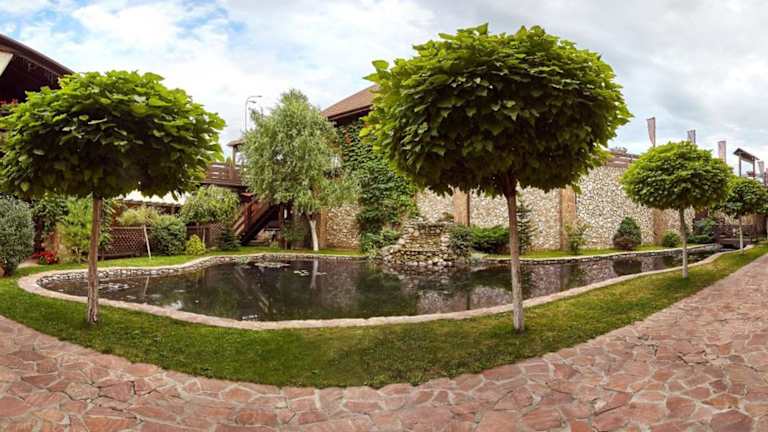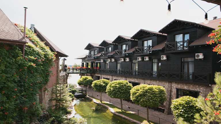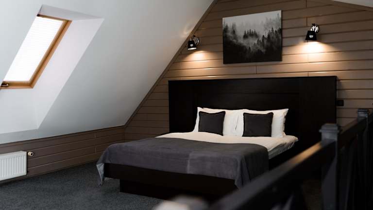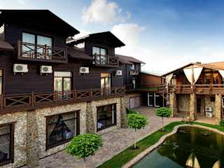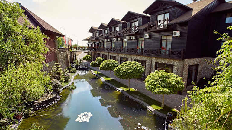Die Verpflegung erfolgt in zwei Restaurants. Im stilvollen Restaurant Offroad wird ukrainische Küche serviert, während europäische Gerichte im Restaurant Porsche'n angeboten werden. Getränke sind an der Hotelbar erhältlich. Es wird auch Frühstück im Zimmer angeboten sowie vegetationsspezifische Speisen auf Anfrage.
