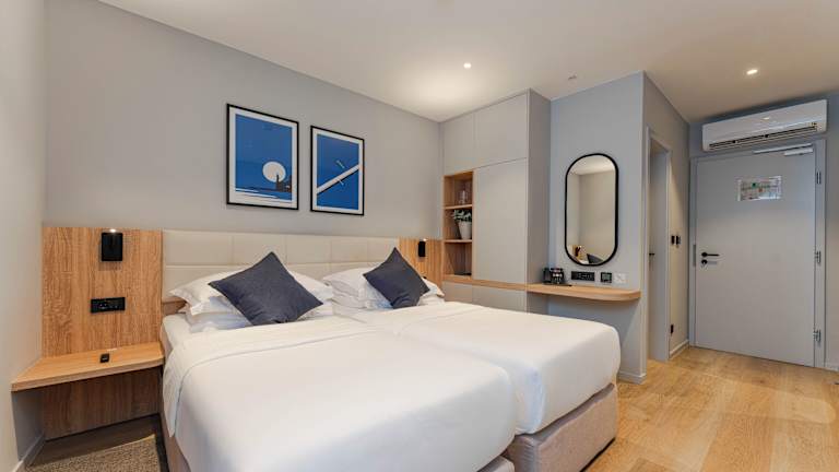 Das Hotel A'mare befindet sich in Zadar, ca. 900 m vom Stadtzentrum entfernt. Der Strand Maestrala Beach ist in weniger als 1,5 km erreichbar. Der Flughafen Zadar liegt in etwa 11 km Entfernung, während der Bahnhof ca. 1,4 km weg ist.