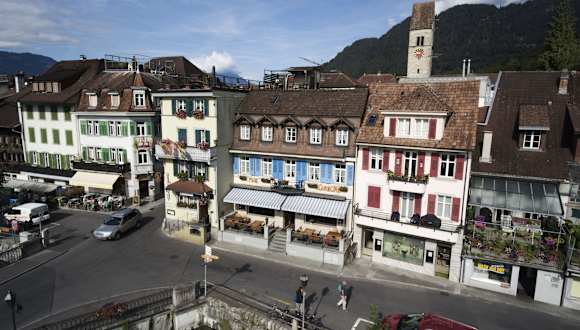 Die Gäste können Aktivitäten wie Wandern, Skifahren und Velofahren in und um Interlaken geniessen.