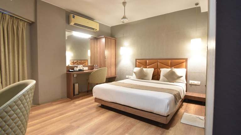 Die klimatisierten Zimmer im Hotel Aarya International sind mit einem Doppelbett sowie weiteren Annehmlichkeiten ausgestattet, darunter eine Minibar, ein Schreibtisch, ein Telefon und ein Flachbild-TV mit Kabelkanälen. Jedes Zimmer verfügt über ein eigenes Badezimmer mit Dusche oder Badewanne sowie kostenlosen Pflegeprodukten. Für Gäste mit besonderen Bedürfnissen sind rollstuhlgerechte Zimmer und Nichtraucherzimmer verfügbar.