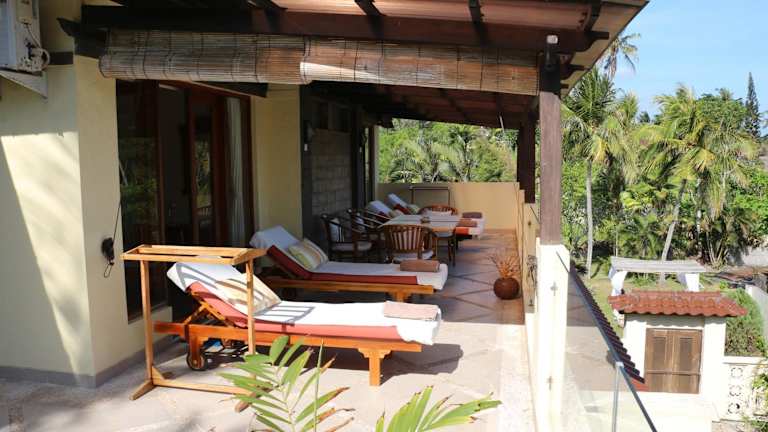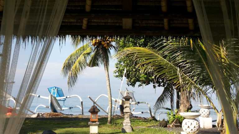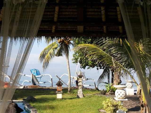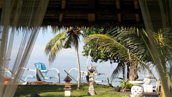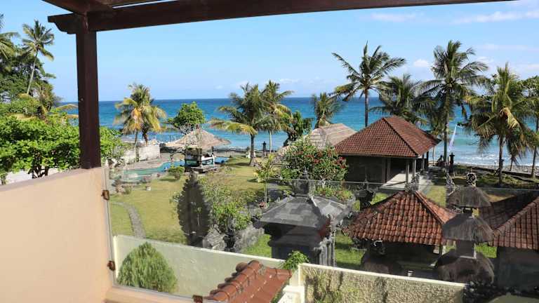 Das Abalone Resort hat gelegen am Balina Beach in Candidasa. Es ist 15 Autominuten vom Zentrum von Candidasa entfernt und der Flughafen Denpasar hat 2 Stunden Fahrtzeit.
