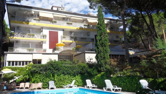Inmitten der Pinienhaine von Lignano Sabbiadoro wenige Schritte vom Strand entfernt (150 mt), bietet das Hotel Abbazia Gemütlichkeit und Komfort.