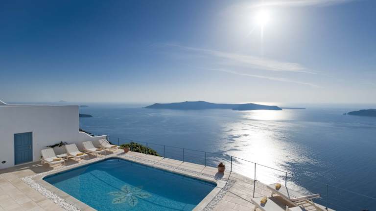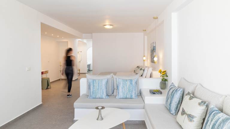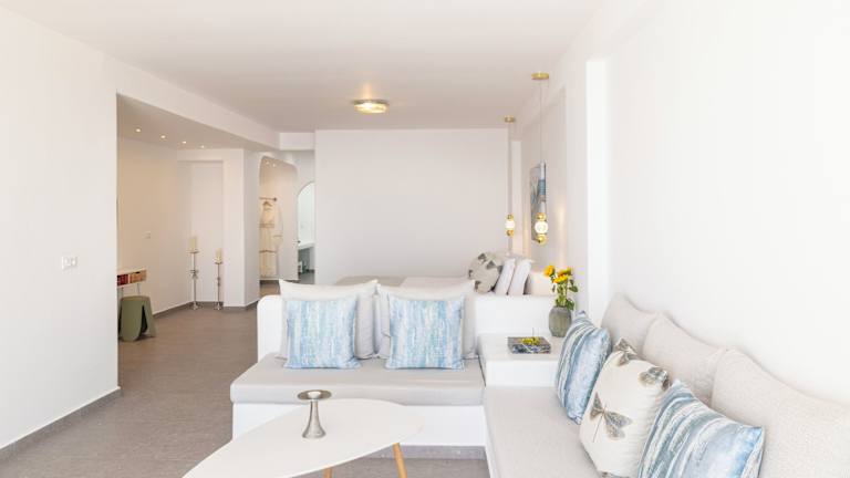 Die luxuriösen Suiten sind stilvoll gestaltet und schallisoliert. Sie bieten Annehmlichkeiten wie Klimaanlage, Internetzugang, Safe und Gartenmöbel. Bei der täglichen Reinigung werden die Zimmer nach den Richtlinien der örtlichen Behörden desinfiziert. Ein besonderes Highlight ist der Aussenpool mit Blick auf die Caldera.