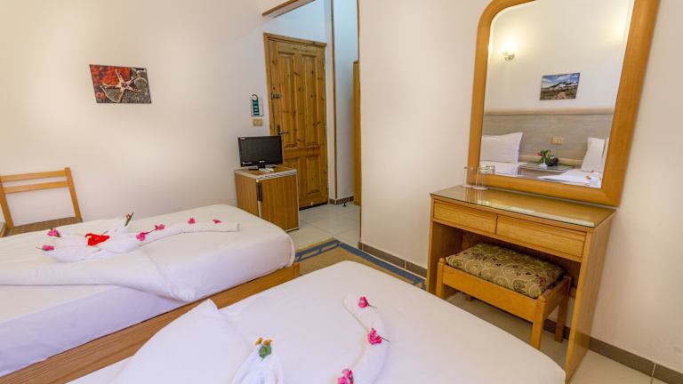 Die klimatisierten Zimmer im Acacia Dahab Hotel verfügen über einen Flachbild-TV, Fliesenböden und Holzmöbel. Es stehen Nichtraucherzimmer zur Verfügung. Das Hotel bietet auch Familienzimmer und Einrichtungen für behinderte Gäste.