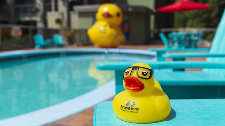 Das Accent Inn Kelowna bietet eine familiäre Atmosphäre mit 100 Zimmern, 12 Suiten, 18 Einzel- und 67 Doppelzimmer verteilt auf 3 Etagen, die bequem über einen Lift erreichbar sind. Die 24-Stunden-Rezeption sorgt für einen herzlichen Empfang durch das englischsprachige Personal. Es stehen diverse Dienstleistungen wie Gepäckaufbewahrung, ein Safe, eine Wechselstube sowie ein Getränkeautomat zur Verfügung. Das Hotel bietet zudem einen beheizten Aussenpool sowie rollstuhlgerechte Einrichtungen und Annehmlichkeiten. WLAN ist im whole Hotel kostenfrei verfügbar.