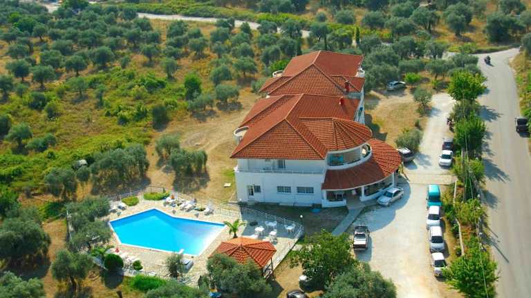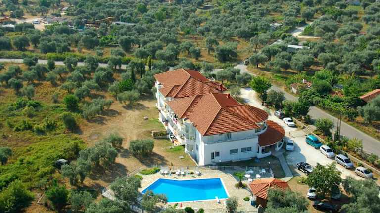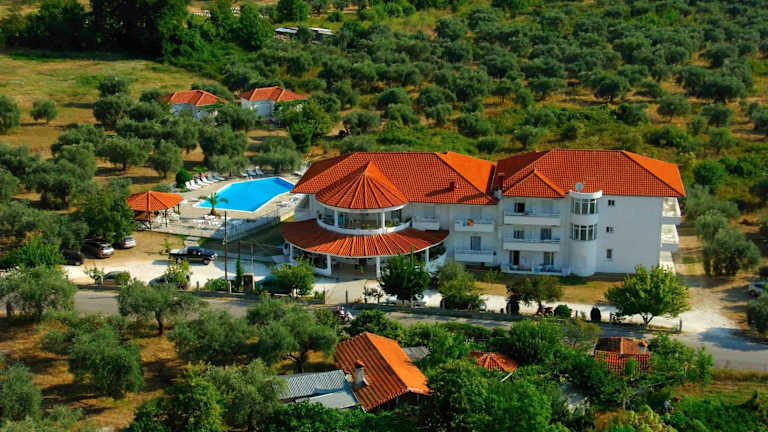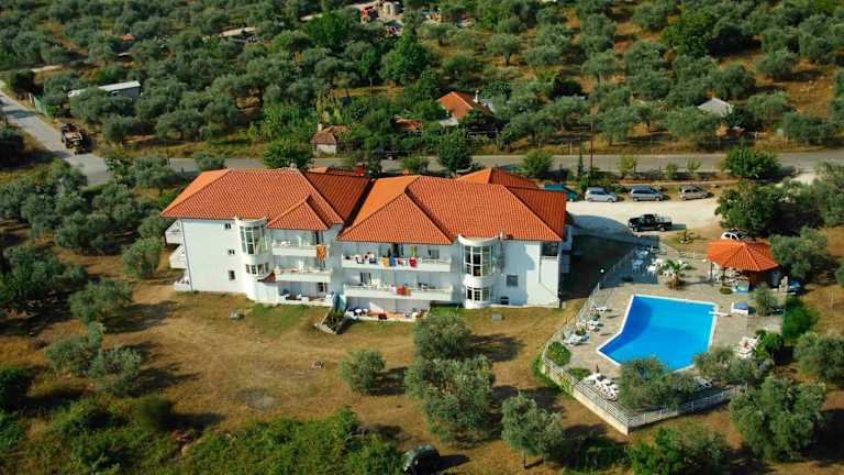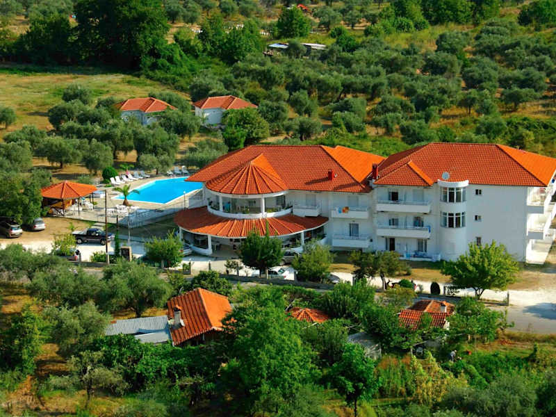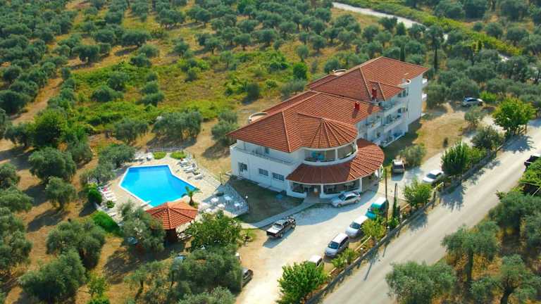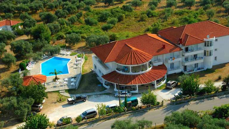 Das Hotel Achillion befindet sich in Skala Potamias, etwa 800 m vom Strand entfernt, in ruhiger Umgebung. Das Stadtzentrum ist rund 1,5 km entfernt. Der Bahnhof liegt in einer Entfernung von ca. 200 m.