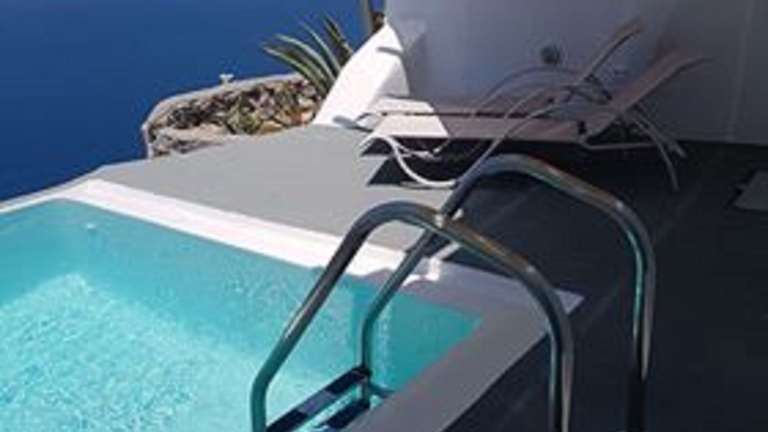 Das Hotel befindet sich im Herzen von Fira, hoch oben auf einer Klippe und bietet einen wunderbaren Ausblick auf das endlose blaue Meer und den Vulkan. Die Entfernung zum Stadtzentrum beträgt ca. 250 m, und der Flughafen Santorin Thira liegt etwa 12 km entfernt.