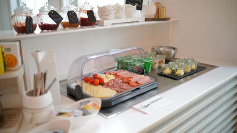 Ein reichhaltiges Frühstücksbuffet, bestehend aus kontinentalen und vegetarischen Speisen, wird in der Unterkunft angeboten. Zudem gibt es ein Restaurant, das griechische Küche serviert. Auf Anfrage werden auch vegetarische, milchfreie und vegane Optionen angeboten.