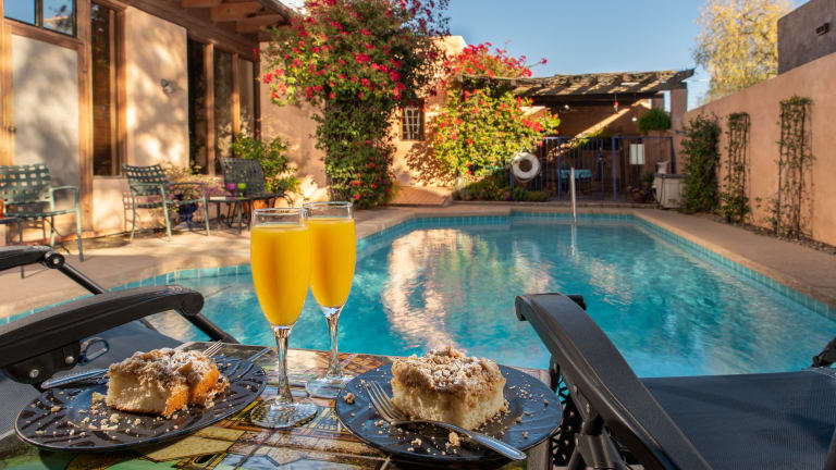 Adobe Rose Inn bietet Übernachtungsmöglichkeiten mit einem Aussenpool, einer Terrasse und einem Conciergeservice. Es steht kostenloses Wifi in der gesamten Unterkunft zur Verfügung. Alle Wohneinheiten haben ein eigenes Badezimmer, eine Dusche, eine Klimaanlage, einen Flachbild-TV sowie einen Kühlschrank. Einige Zimmer verfügen über einen Balkon oder eine Veranda/Patiow, die entweder mit Bergblick oder Poolblick ausgestattet sind.