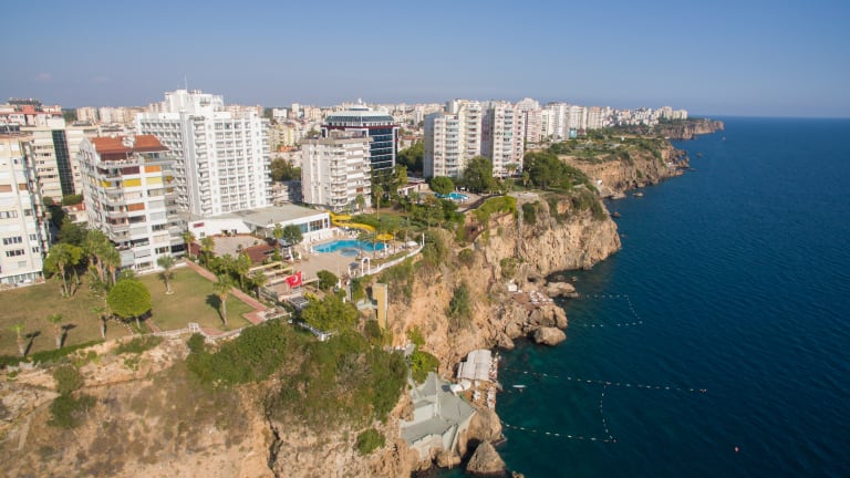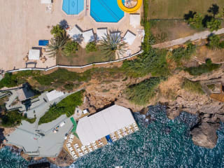Mit einem Außenpool mit Wasserrutschen und Zimmern mit eigenem Balkon erwartet Sie das Adonis Hotel an der Küste von Antalya mit Blick auf das Mittelmeer. Die im Jahr 2019 komplett renovierten Zimmer im Antalya Adonis Hotel sind mit gerahmten Kunstwerken und Holzmöbeln eingerichtet. Jedes Zimmer verfügt über einen TV und ein eigenes gefliestes Bad. Das Restaurant im Adonis Hotel serviert Ihnen türkische und internationale Küche. Im Innen- und Außenbereich können Sie speisen. Die Bars und Clubs im Zentrum von Antalya liegen nur 5 Fahrminuten vom Hotel entfernt. Über eine Treppe in den Klippen gelangen Sie zur privaten Badeplattform und zur Sonnenterrasse des Adonis Hotels. Freuen Sie sich auch auf einen Innenpool und ein Spielezimmer mit Darts und Billard. Das Antalya Adonis Hotel liegt 20 Fahrminuten vom internationalen Flughafen Antalya entfernt. Die Parkplätze an der Unterkunft nutzen Sie kostenfrei. AKTIVITÄTEN & SERVICES Mit Animation-Shows, Tischtennis, Billard, Videospiele, Mini-Club für die Kinder in den Sommermonaten bieten wir Ihnen viele Entertainmentalternativen für Sie und Ihre Kinder. Außen-und Innenpool für die Erwachsenen und Kinder.Strand mit blauer Flagge, Türkisches Bad, Dampfbad und Außenpool und Massage.Friseur Salon für Männer und Frauen, Gesichtsmasken, Maniküre und Pediküre, dampfige Hautpflege mit professionellen Produkten sind zur ihrer Verfügung gestellt.