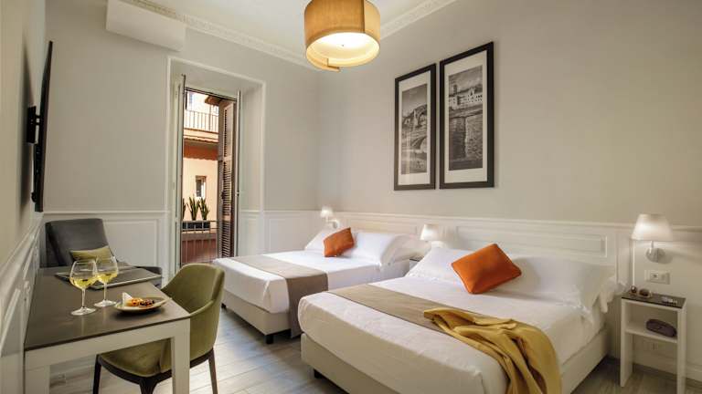 Jeden Morgen wird Ihnen eine kostenlose Auswahl an Brot und Croissants auf das Zimmer gebracht. In der Umgebung des Hotels gibt es eine Vielzahl von Restaurants, in denen Sie traditionelle römische Küche genießen können. Das freundliche Personal des Hotels gibt Ihnen gerne Empfehlungen für Restaurants und hilft Ihnen bei der Reservierung.