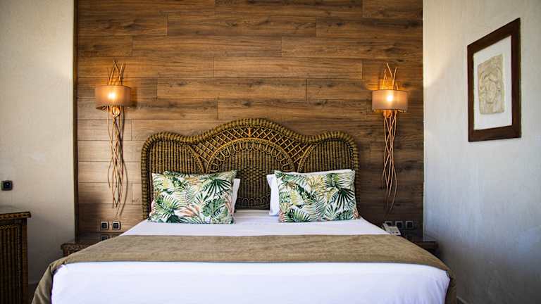 Das Hotel verfügt über insgesamt 257 Zimmer, die in verschiedenen Typen verfügbar sind. Die Zimmer sind im afrikanischen Stil eingerichtet und umfassen Annehmlichkeiten wie Klimaanlage, Fernseher mit deutschem Programm, Kühlschrank, Balkon mit Sitzgelegenheit und WLAN/WiFi ohne Gebühr. Einige Zimmer bieten Garten- oder Meerblick.