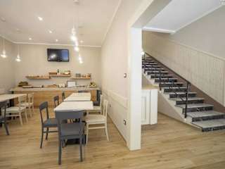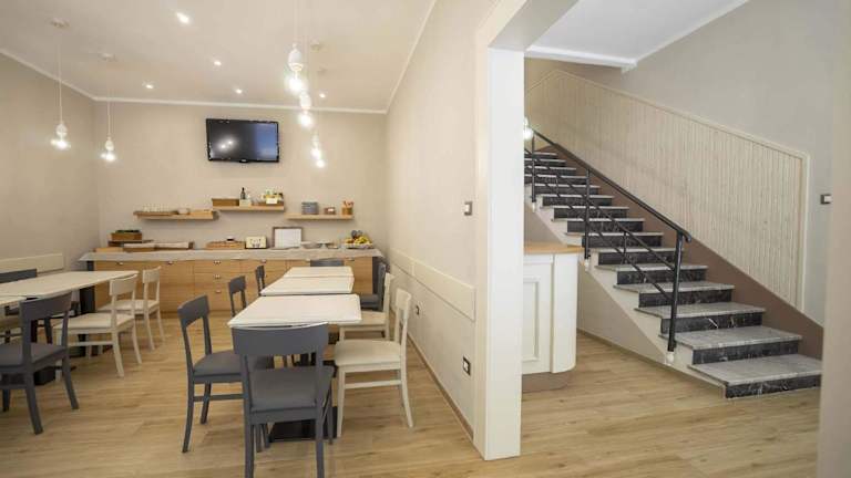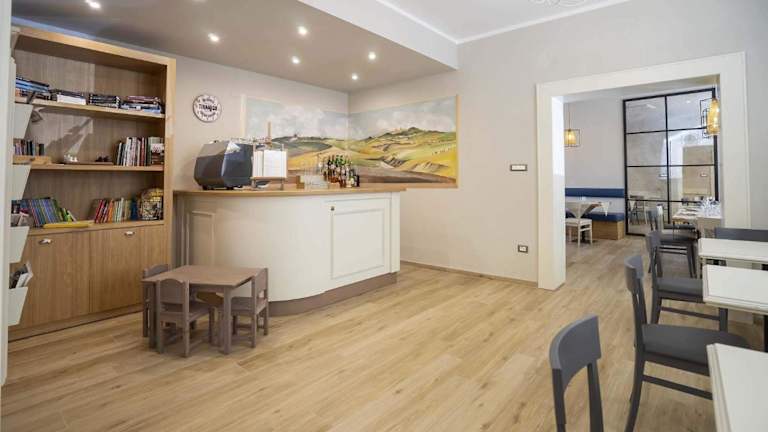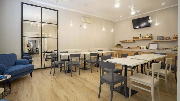 Es wird ein Frühstück in Buffetform angeboten, welches italienische und vegetarische Optionen umfasst. Ein Restaurant sowie eine Snackbar sind ebenfalls vorhanden.