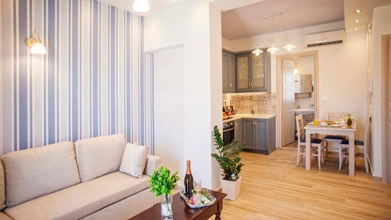 Die Zimmer im Afroditi Hotel sind traditionell eingerichtet und verfügen über eine grosse, voll ausgestattete Küche. Jedes Zimmer bietet klimatisierte Räumlichkeiten, einen Fernseher und kostenfreien Internetzugang. Von den Balkonen oder Veranden der Zimmer geniessen die Gäste einen Blick auf die malerische Stadt Rethymno, wobei einige Zimmer sogar Meerblick bieten.