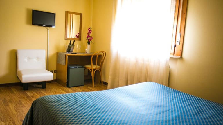 Die Zimmer im Hotel Agli Olmi sind hell und funktional eingerichtet. Die klassische Gestaltung sorgt für eine gemütliche Atmosphäre. Alle Zimmer sind klimatisiert und verfügen über ein eigenes Badezimmer mit Dusche.