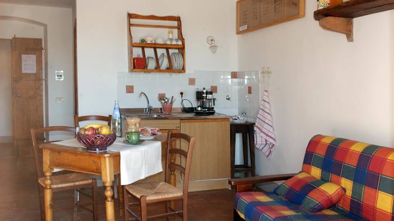 Im Hotel stehen im Zimmer Zutaten wie Guetzli, Joghurt, Milch, Marmelade und Butter für ein italienisches Frühstück bereit. Zudem können Gäste im Agriturismo Wein, Olivenöl und Honig erwerben.