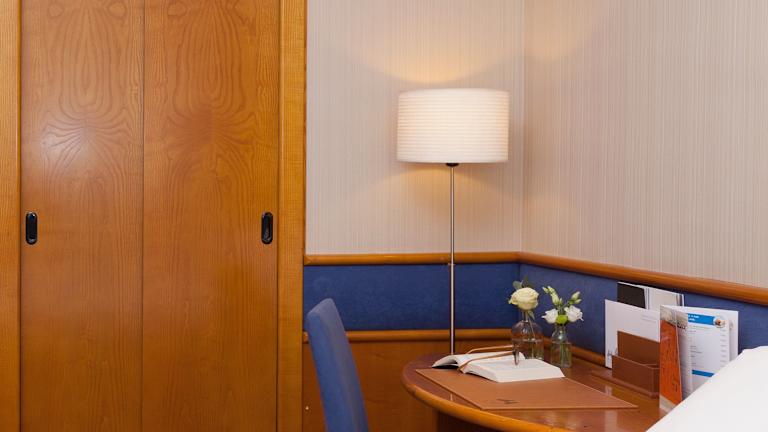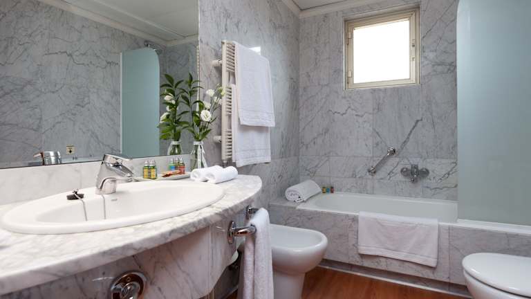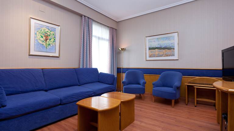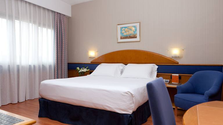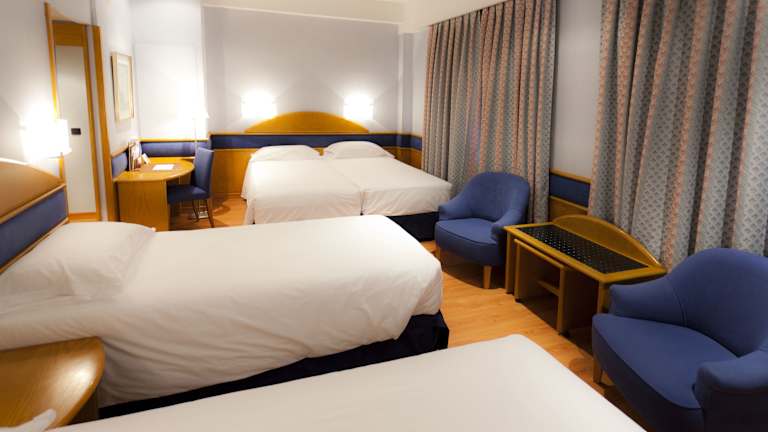 Die klimatisierten Zimmer sind mit einem Doppelbett und einem Sofabett ausgestattet und bieten ein angenehmes Raumklima. Zu den Annehmlichkeiten zählen ein Safe, eine Minibar, ein Schreibtisch sowie ein Kühlschrank. Die Badezimmer verfügen über eine Dusche, eine Badewanne und ein Bidet. Haartrockner sowie Kosmetikartikel sind ebenfalls vorhanden. Es können rollstuhlgerechte Zimmer gebucht werden. Zudem bietet das Hotel Familien-, Nichtraucher- und Raucherzimmer an.