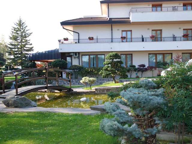 Das Hotel bietet einen großen Garten, in dem Sie entspannen können. Es gibt auch eine Terrasse, auf der Sie bei einem Getränk von der Bar entspannen können. Die Umgebung ist ideal für Wanderungen und Fahrradtouren.