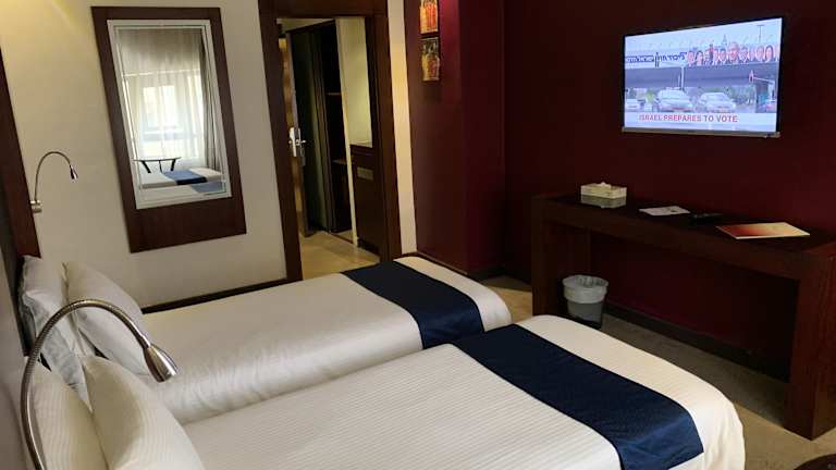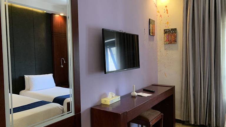 Die Zimmer sind klimatisiert und mit einem Kingsizebett oder einem Sofabett ausgestattet. Auf Wunsch können Zustellbetten bereitgestellt werden. Die Zimmer verfügen über einen Minikühlschrank, eine Hosenpresse, ein Telefon sowie Wifi (ohne Gebühr). Familien- und Nichtraucherzimmer sind ebenfalls verfügbar.