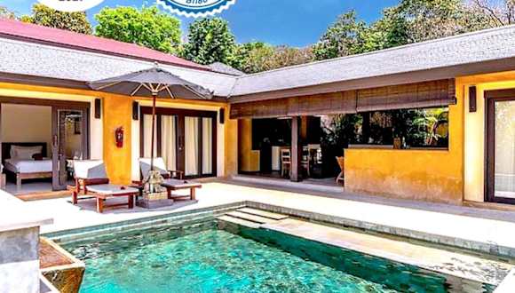 Die Villen besitzen ein separates Wohnzimmer und sind mit einem Flachbild-Kabel-/Sat-TV sowie einem halb im Freien liegenden Bad mit Dusche ausgestattet. Die Bequemlichkeit umfasst auch eine Klimaanlage und Essenslieferung in die Unterkunft.