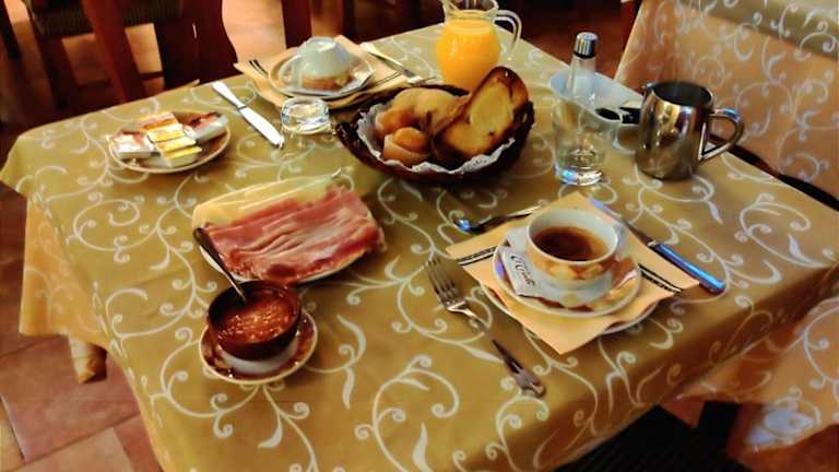 Das Hotel Albarrán serviert täglich ein Frühstück im Speisesaal. Für kleine Zwischenmahlzeiten oder Snacks ist die Terrasse ideal.