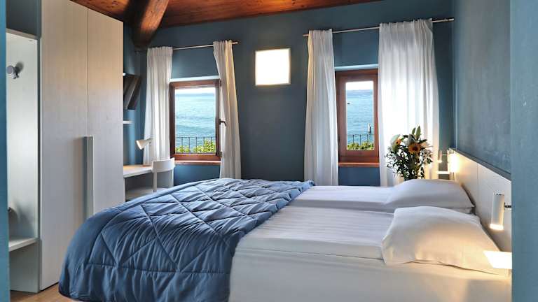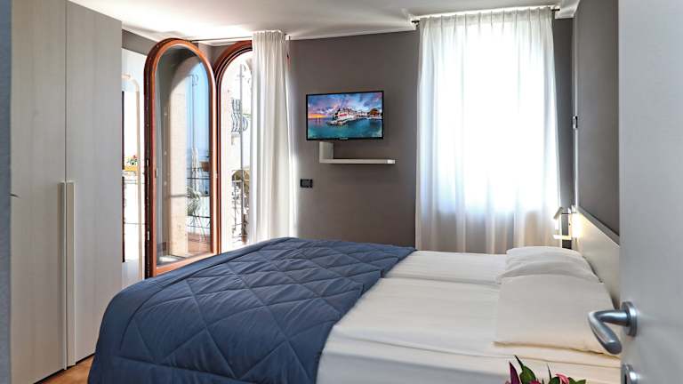 Die einfach eingerichteten Zimmer sind hell und klimatisiert. Sie verfügen über ein Bad, einen Safe und Sat-TV. Teilweise bieten sie einen Blick auf den Gardasee oder die romantische Via Manzoni.