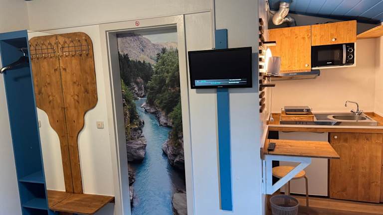 Die Ferienwohnung ist ausgestattet mit einem Schlafzimmer, einem Badezimmer, Bettwäsche, Handtüchern, einem Flachbild-TV sowie einer voll ausgestatteten Küche. Eine Terrasse mit Gartenblick ergänzt die Bequemlichkeiten der Unterkunft.