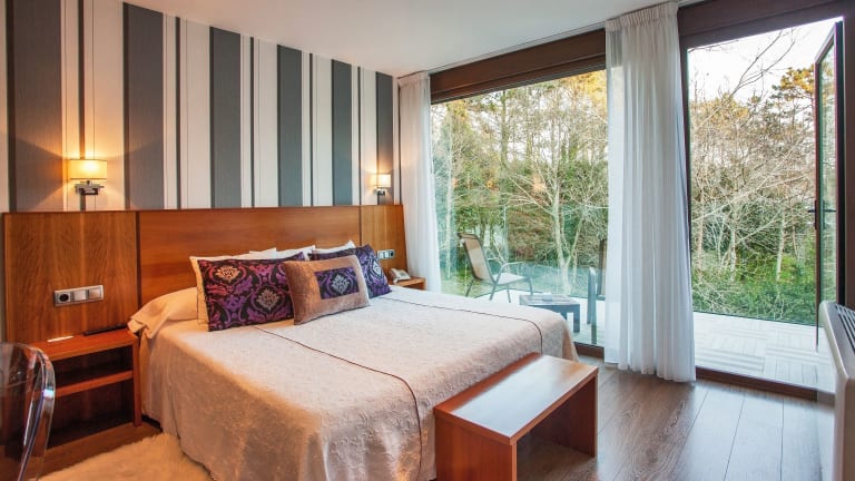 Die klimatisierten, hellen Zimmer im Hotel Alén do mar sind mit einem Plasma-TV, einem Safe und einem eigenen Badezimmer ausgestattet. Einige Zimmer bieten einen schönen Blick auf den Wald oder den Strand, während andere über eine Terrasse und eine Whirlpool-Badewanne oder Wellnessdusche verfügen.